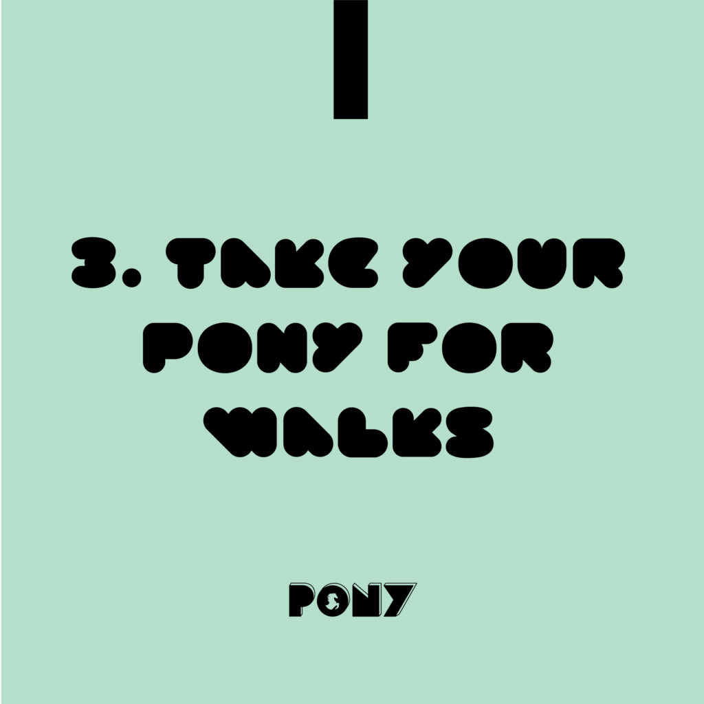 · Use your hands to interact with your pony – touch, tickle, scratch, groom and massage. This is how ponies bond with each other, and the more you can mimic that behaviour, the more comfortable your pony will be.