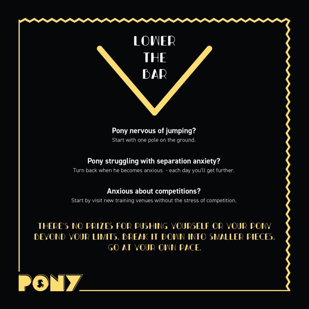 There’s no prizes for pushing yourself or your pony beyond your limits. Break it down into smaller pieces. Go at your own pace.