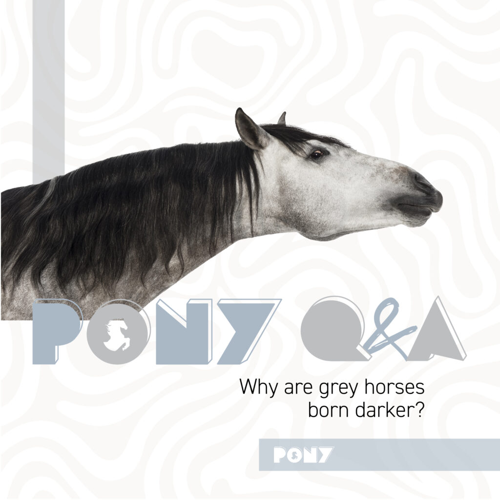 A: Compared to white horses with pink skin, grey horses possess a specific gene inherited from one or both parents. This gene causes the horse’s coat to turn grey with age even though he was born darker, usually chestnut or bay. The skin of these grey horses is not pink and will stay the same colour from birth (usually black).