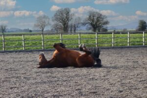 If you’re about to ride or show, pop on a rug to keep your freshly-groomed pony clean. And if he’s rolling constantly, it might be a sign of itchy skin — so let your instructor or groom know just in case!