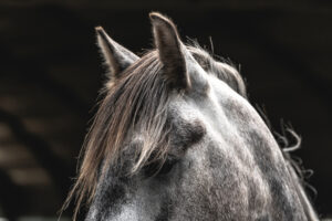 Horse eyes are about the same size as whale eyes – much bigger than you’d expect! Those large eyes help them see predators coming from far away. They’re positioned on the sides of their heads, giving them nearly 360-degree vision.