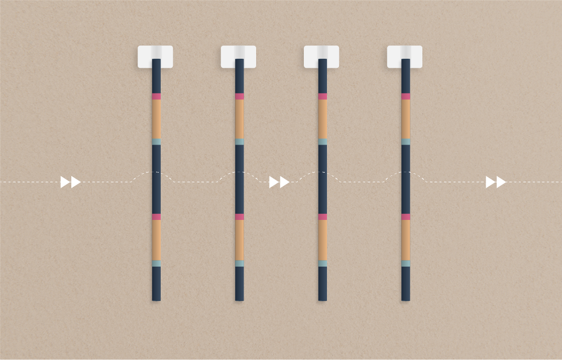 Lay four to five poles in a fan shape. Make the inside ends 0.6 metres apart (about half a big step). Make the outside ends 1.2–1.5 metres apart (about 1–1.5 big steps). Ride over them in a curve to help your pony bend and stay flexible. Make sure to ride this exercise equally in both directions.