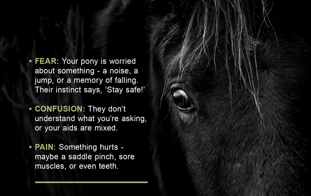 Every rider has been there – your pony stops at a jump, plants their feet at the gate, or suddenly decides the scary corner of the arena is actually full of monsters. It can feel frustrating, but here’s the secret: when your pony says no, they’re not being naughty; they’re trying to tell you something.