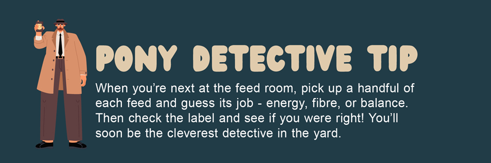 A healthy diet isn’t about feeding more; it’s about feeding right. If you can explain what each part of your pony’s feed does and why it’s there, you’re already way ahead of most riders. That’s what being a true Feed Room Detective is all about!