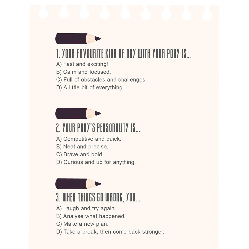 Big leaps can be scary for both you and your pony. So, break challenges into smaller pieces. Want to canter again after a fall? Start with a strong, confident trot. Want to jump higher? Trot over a pole first. Every small success adds up, like stepping stones. One day you’ll look back and realise how far you’ve come.